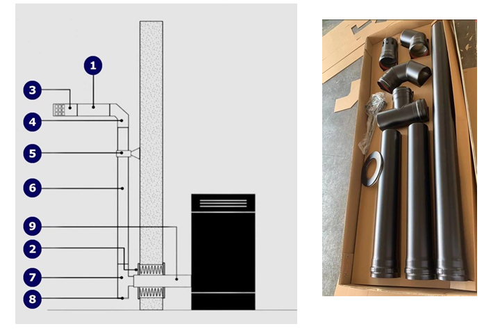 Completo set de ductos y accesorios en acero de carbono para instalación de estufas a pellet. Incluye cañones de distintos tamaños, codo 90°, TEE con tapa, tapa cielo, gorro muro y abrazadera. ¡Solución práctica y resistente para tu sistema de evacuación de gases! | |||