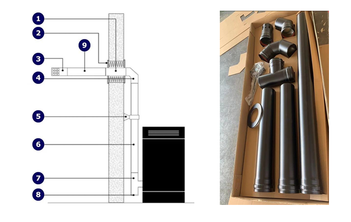 Set completo de ductos y accesorios en acero de carbono (ø80mm), ideal para una instalación segura y eficiente. Incluye cañones, TEE, codo, tapa cielo, gorro muro y abrazadera. ¡Todo lo que necesitas en un solo kit! | |||
